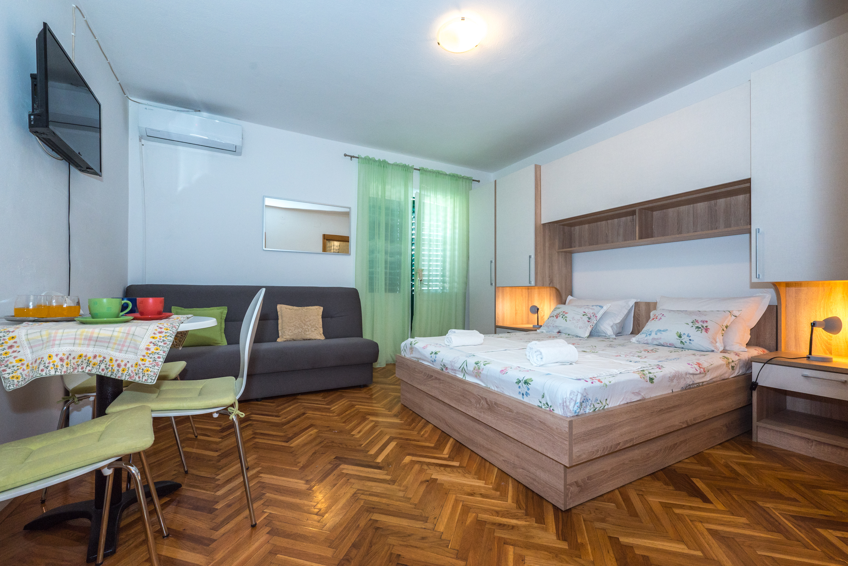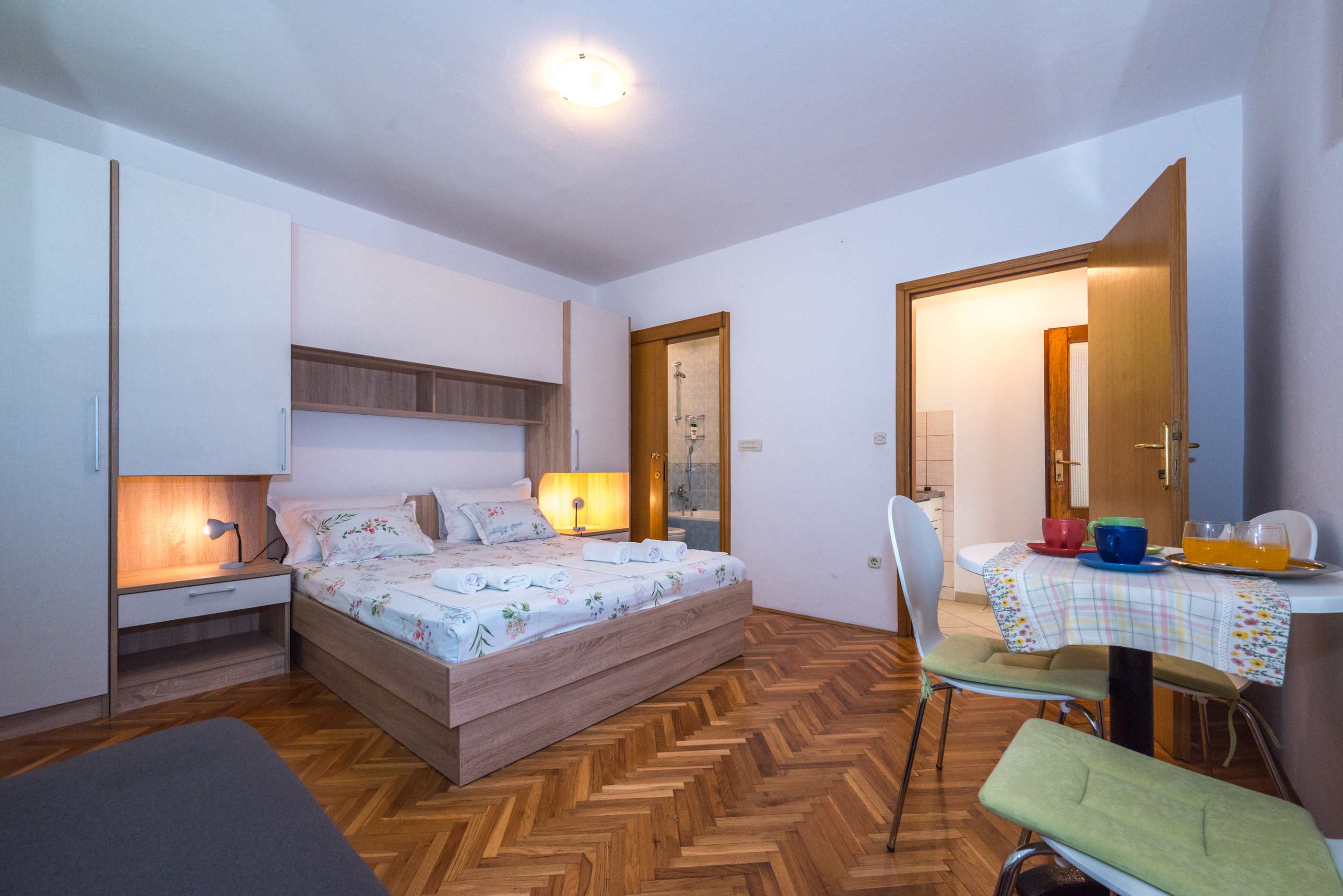 Apartman 1 “Apartman 1” je apartman studio koji se sastoji od troležajne spavaće soba, mini kuhinje, kupaonice i terase. Apartman je klimatiziran i u njemu se nalazi TV.