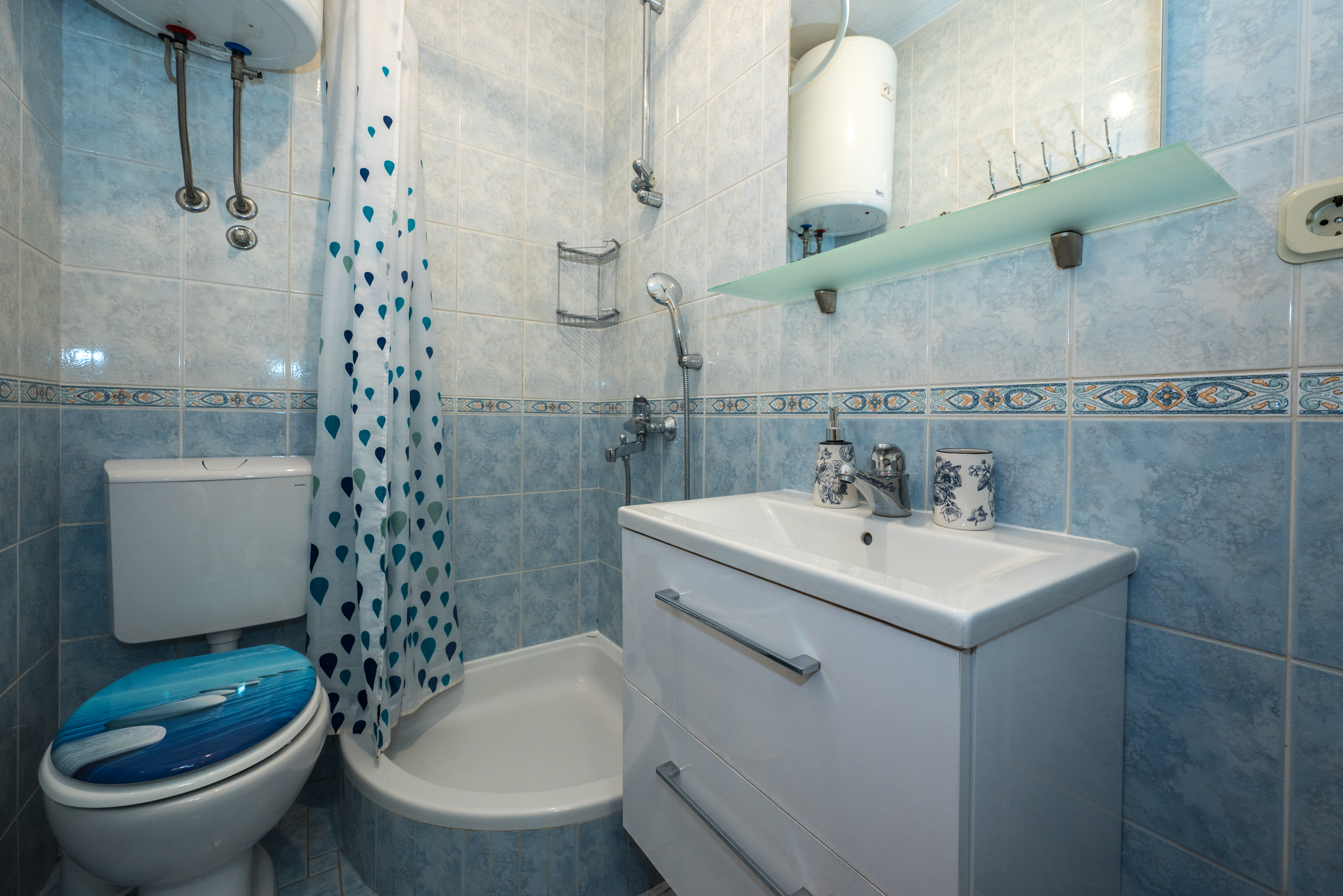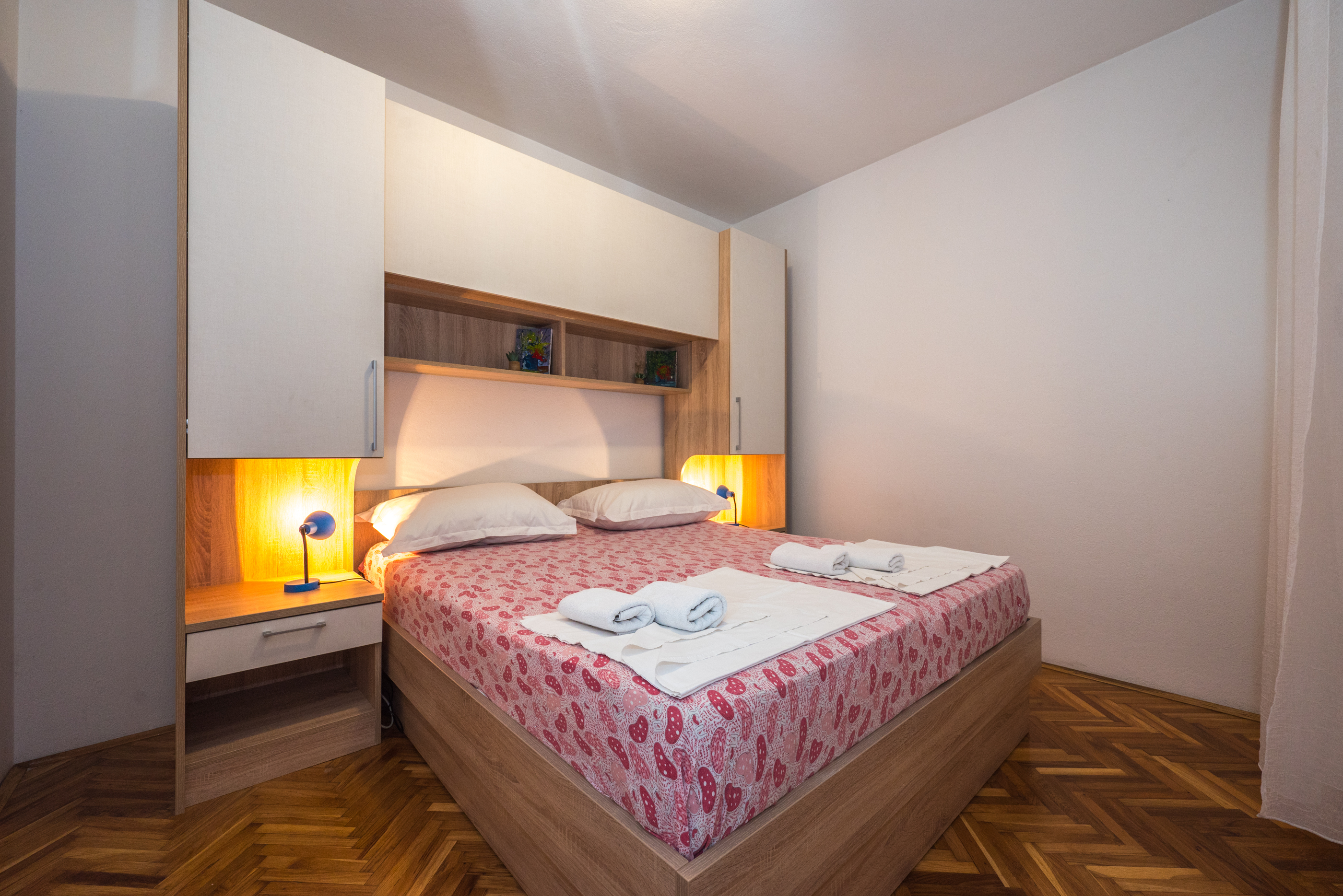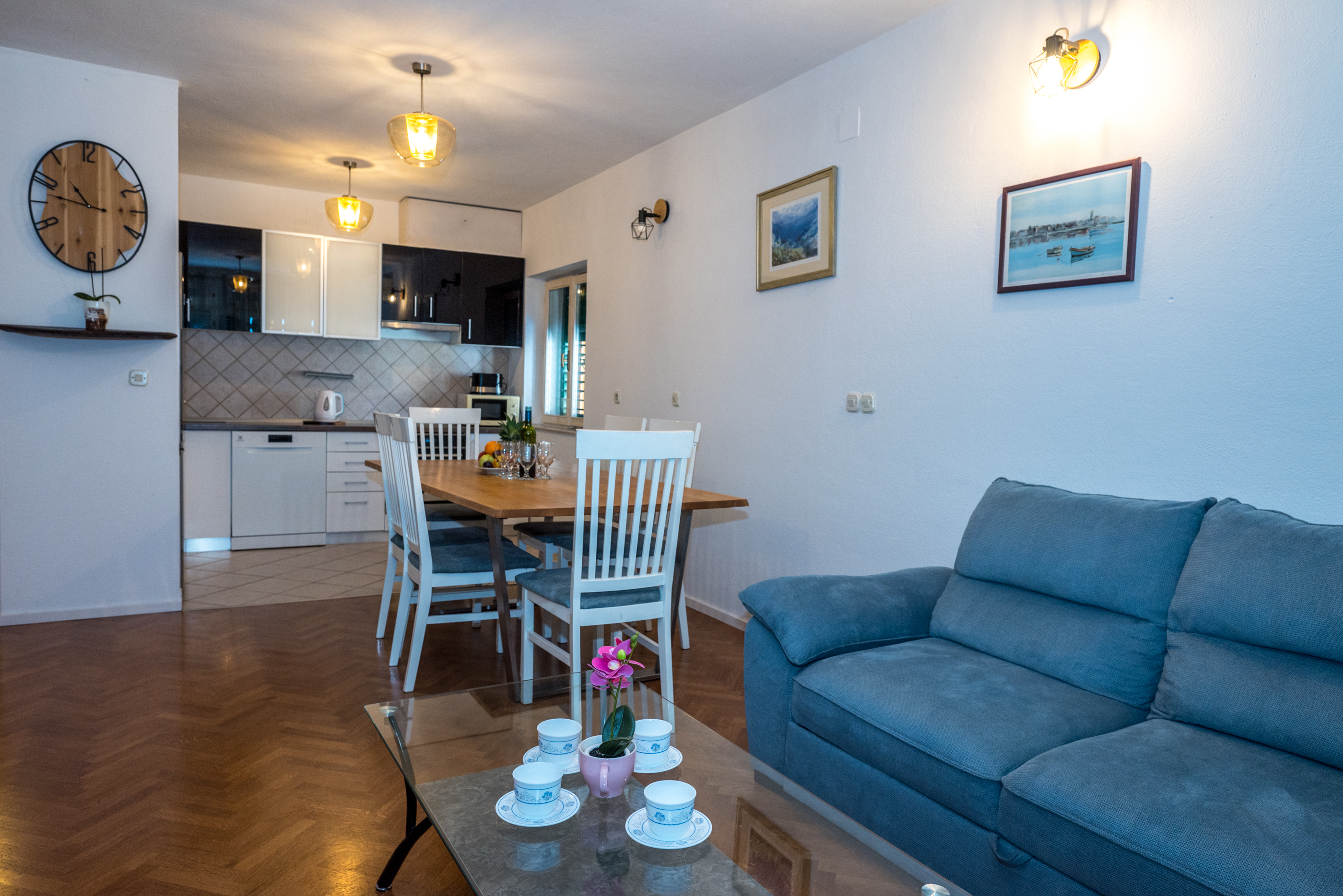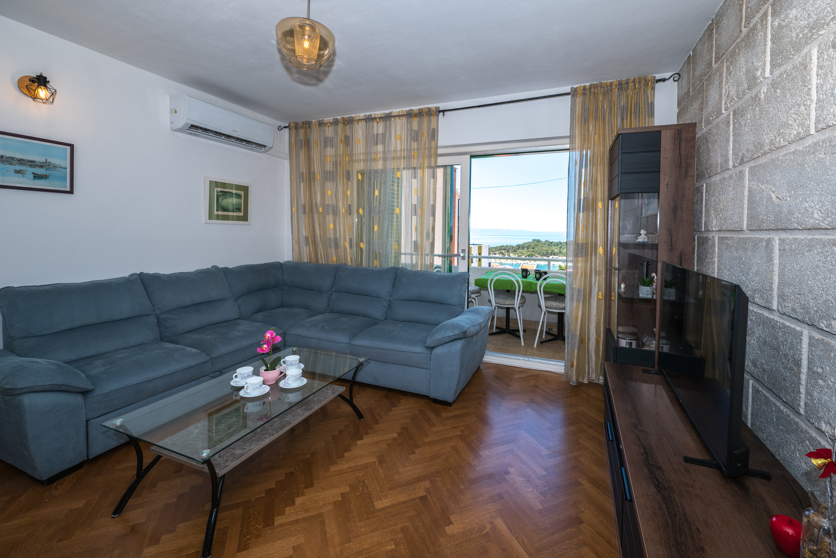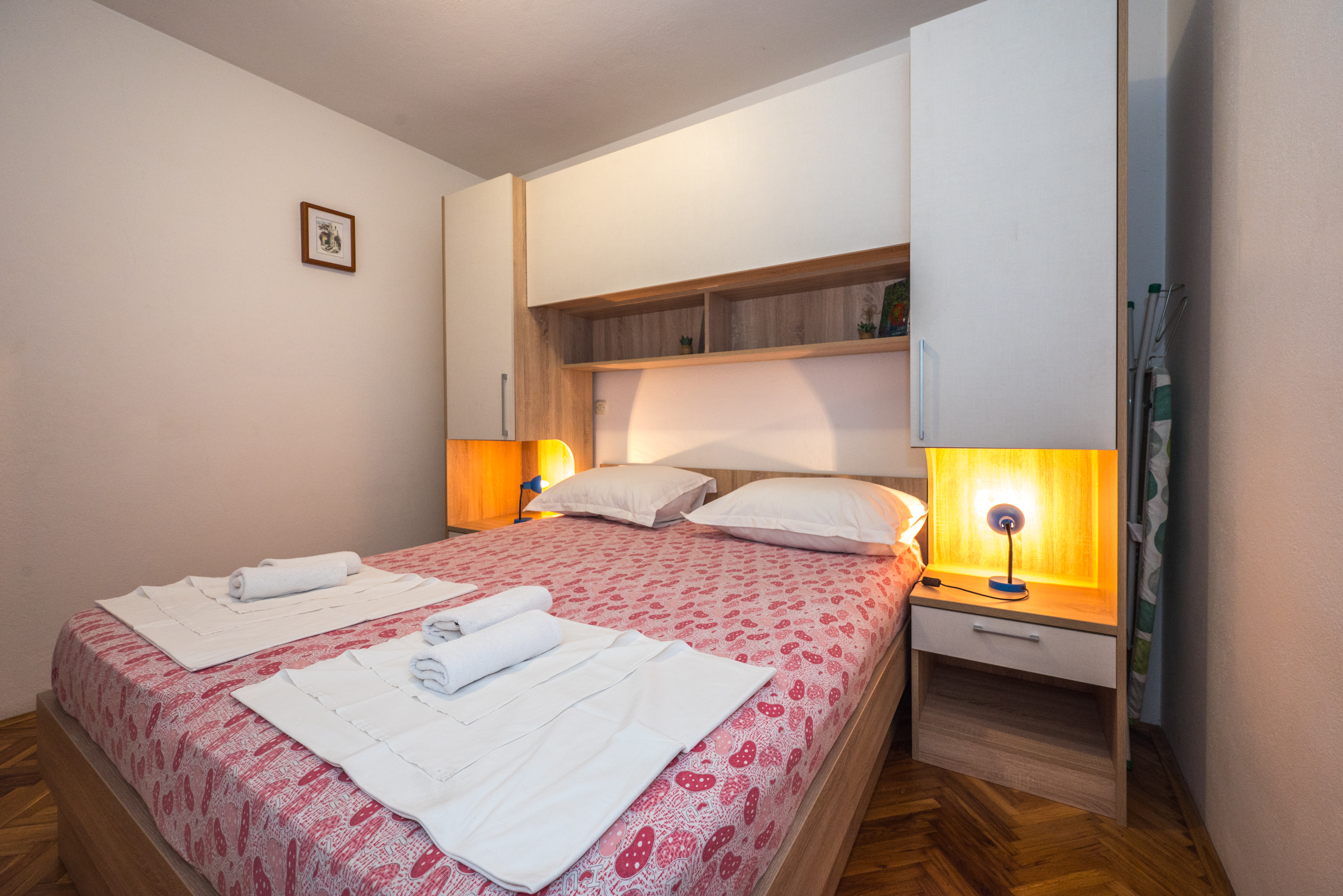 Apartman 2 Apartman 2 je apartman tipa “2+2+2” koji se sastoji od dvije dvoležajne spavaće sobe, dvije kupaonice, kuhinje s blagovaonicom, dnevnog boravka te terase. Apartman je klimatiziran i u njemu se nalazi TV. 1 2 ►