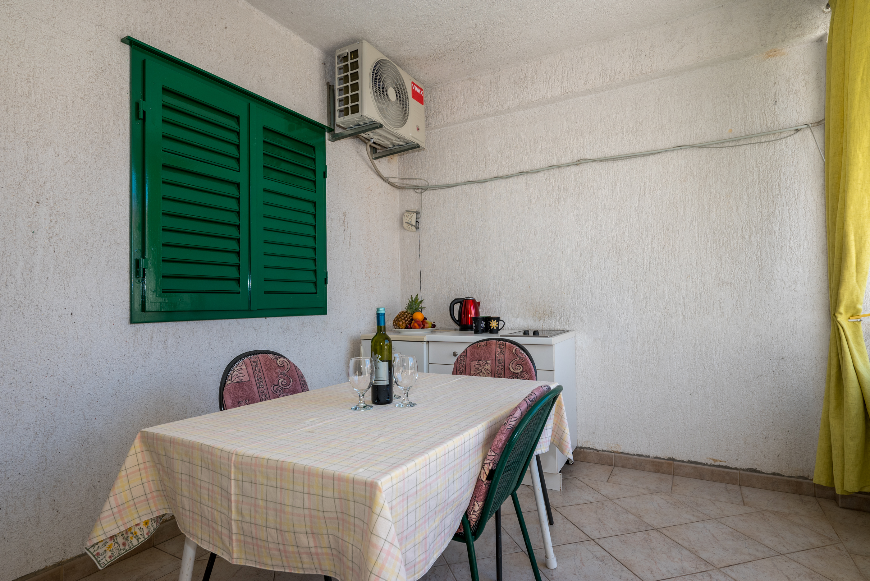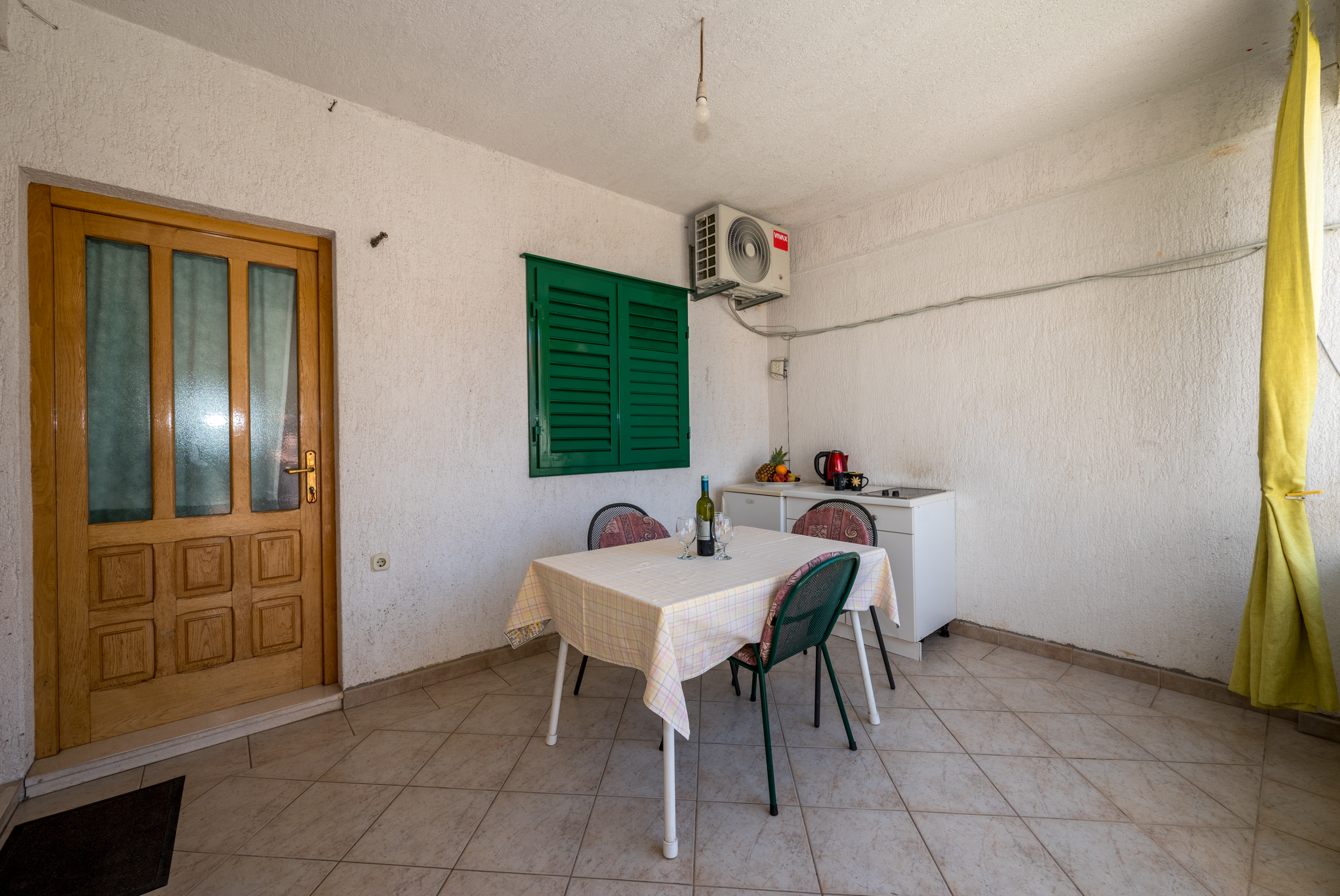 Soba 1 “Soba 1” sastoji se od sobe s kupaonicom i velike terase. Soba je klimatizirana i u njoj se nalazi TV.